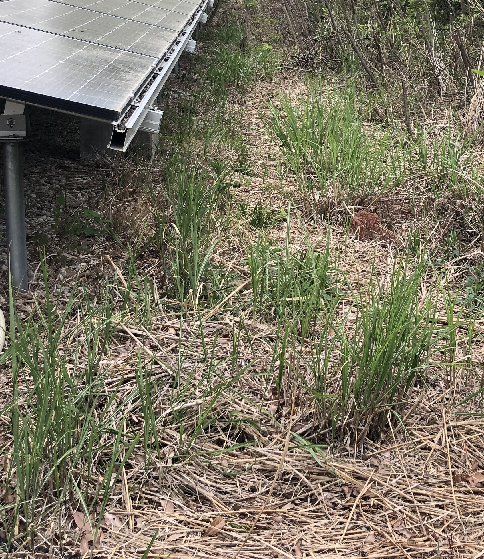 太陽光発電所では、草が少なく良好な状態であっても、低木や雑木が成長するとパネルへの影響により発電効率が低下する場合があります。